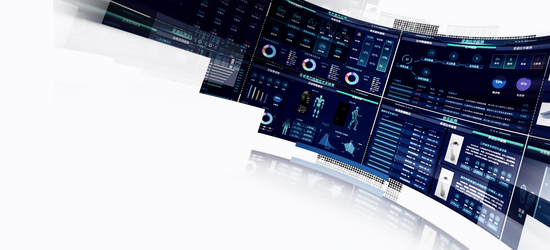 全面汇聚现场、人员、鞋样、赤足等数据资源,实现高效、实时的一站式多维数据统计及可视化展示。